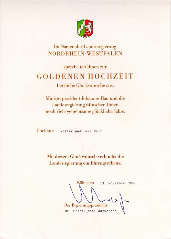 Glückwünsche der Landesregierung Nordrhein-Westfalen durch den Regierungspräsidenten Antwerpes