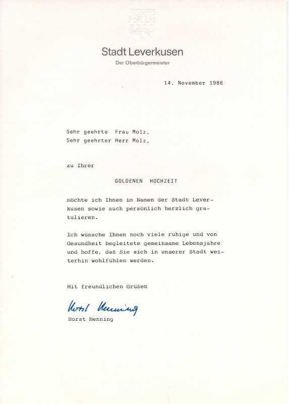 Gratulation der Stadt Leverkusen