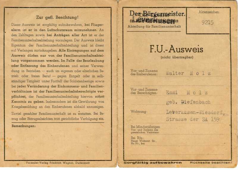 F.U.-Ausweis 1944(Familien-Unterhalt)