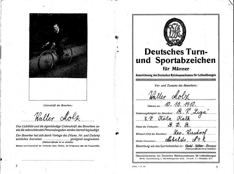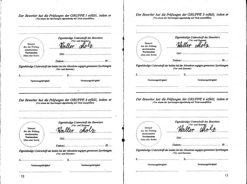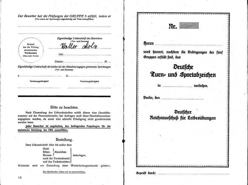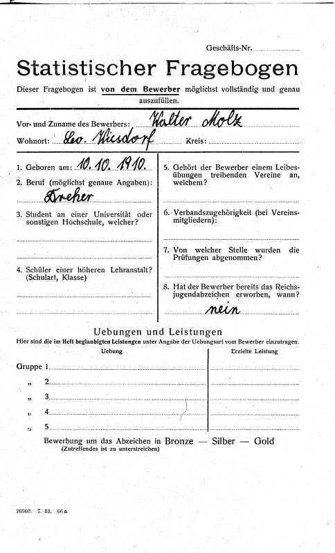 Deutsches Turn- und Sportabzeichen 1930(wurde scheinbar nicht abgelegt, da ohne Stempel und Unterschrift)